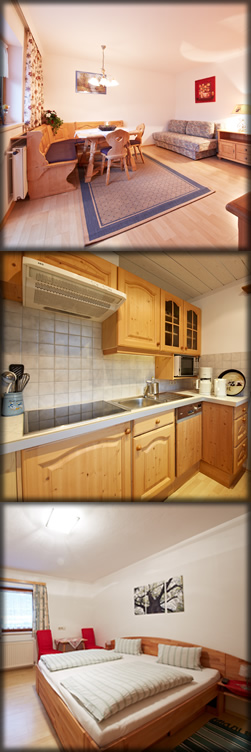 Unser Appartement ist eingeteilt in Küche, Wohnraum mit 2 bequemen Ausziehbetten sowie 2 Doppelzimmer mit je einem extra Bad - Dusche/WC und verfügen über einen Balkon.